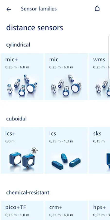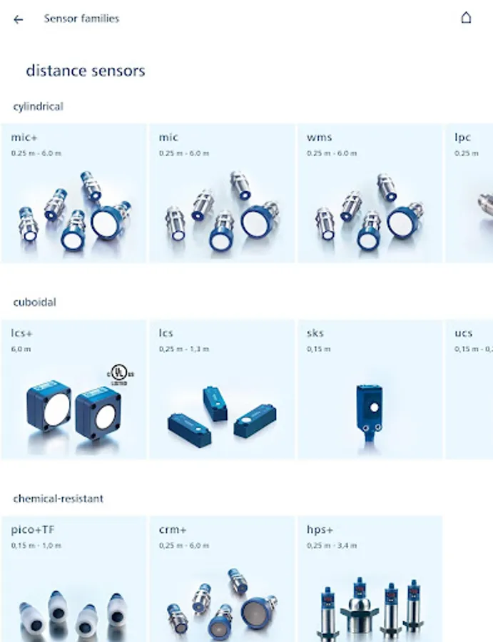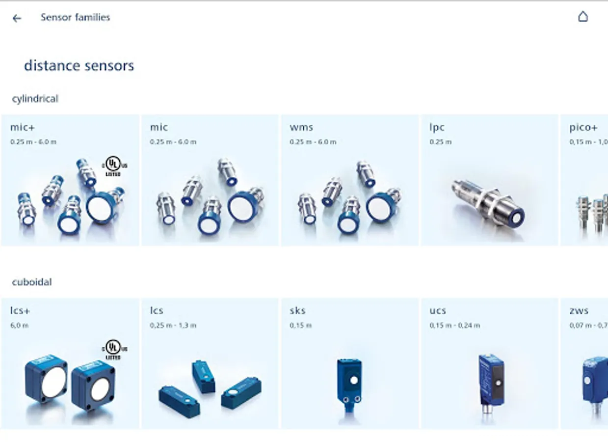 Become acquainted with sensor families and its associated sensors. The app contains both highlights and detailed specifications and respective user manuals.