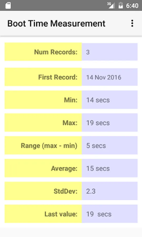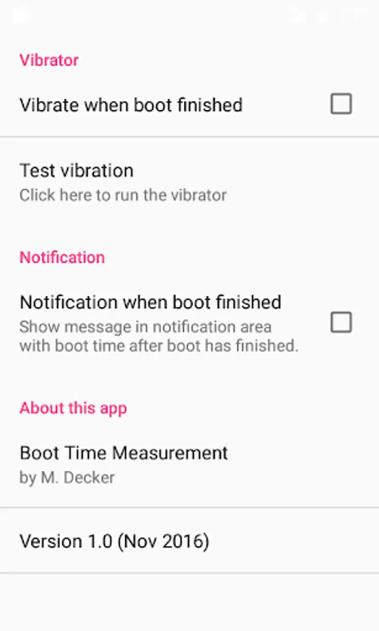 The app's purpose is it to determine and save the time your Android device needed for booting. This way you can see how often your booted your device, and if the time needed for booting is getting longer.
