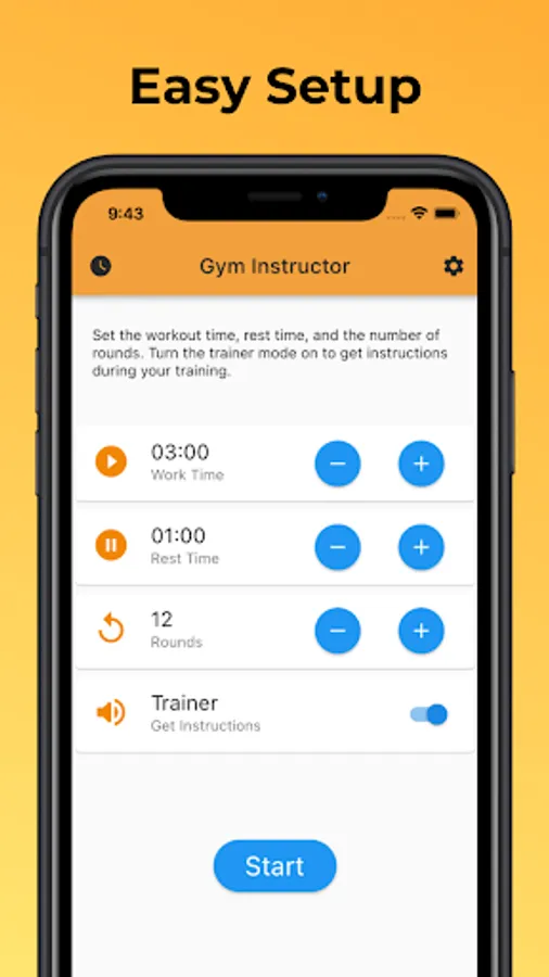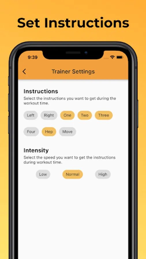 * Optional trainer mode gives your instructions during your workout.
