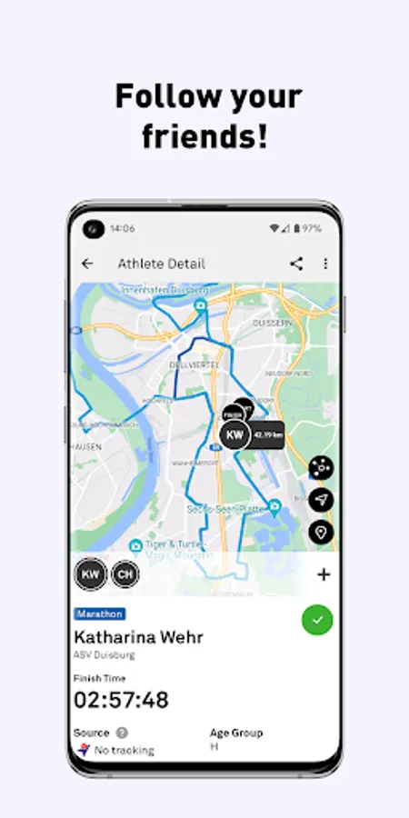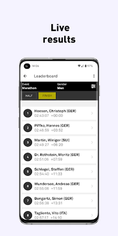 You can recall information on the achieved distance, pace, race time and estimated finish time on your smartphone.