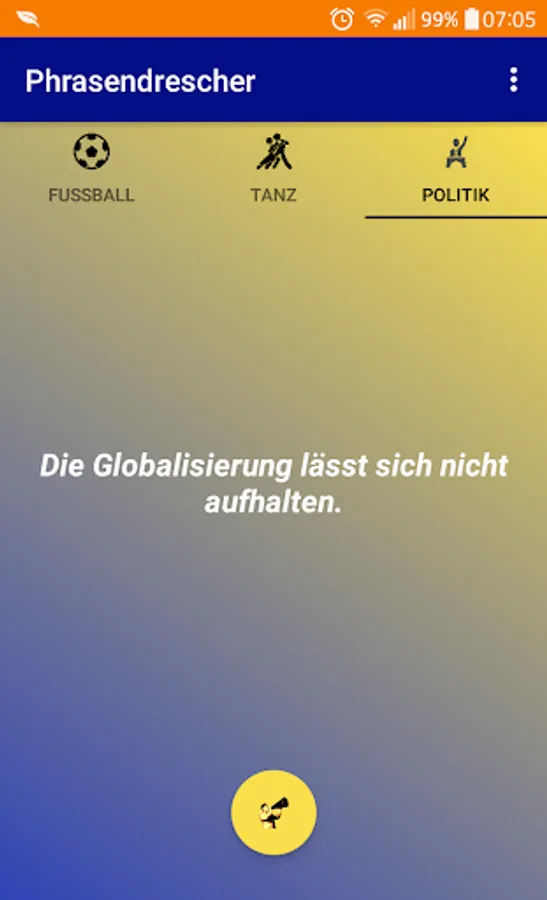 At the moment the app is limited to the topics football, dancing and politics, but other topics are planned :)