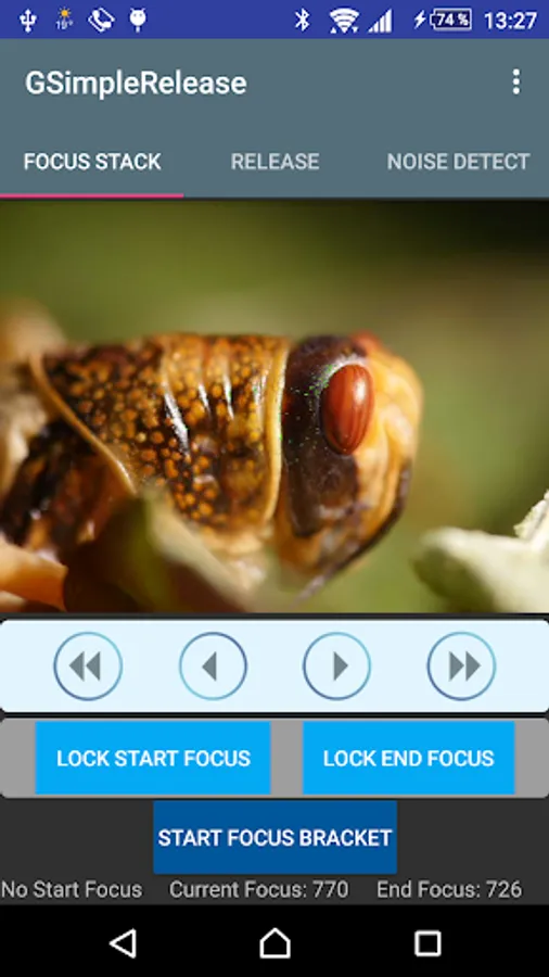 Start Focus Bracket: This will display the Bracket dialog. You can either cancel the operation or have the choice between to set the desired step width.