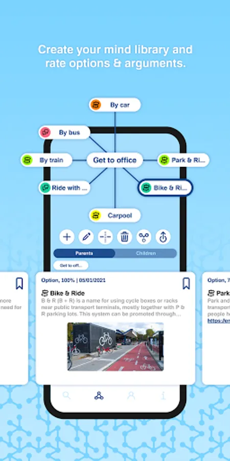 Starting from a central node, mindlib enables you to save, relate and compare information. Knowledge is displayed in a mind map-like style and everything is interconnectable. Just like your mind.