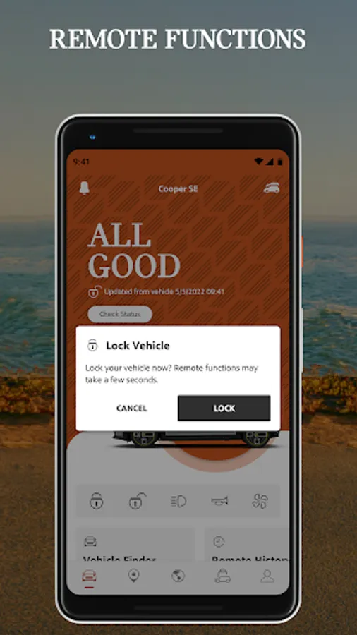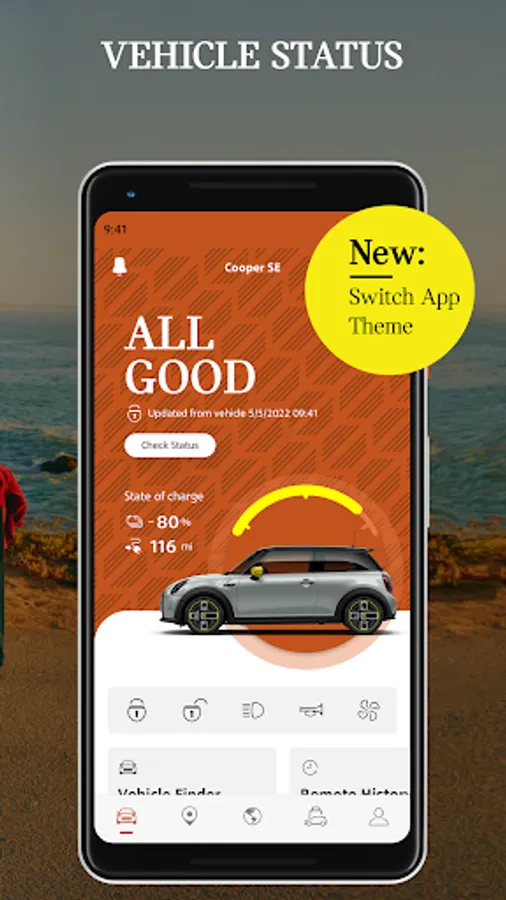 “All Good” – The MINI App provides you with an overview of crucial status information like your MINI’s drive-ready state, enabling you to: