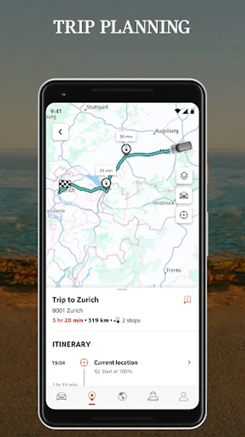 Find and send destinations, gas stations, charging stations, and parking areas directly to the navigation system