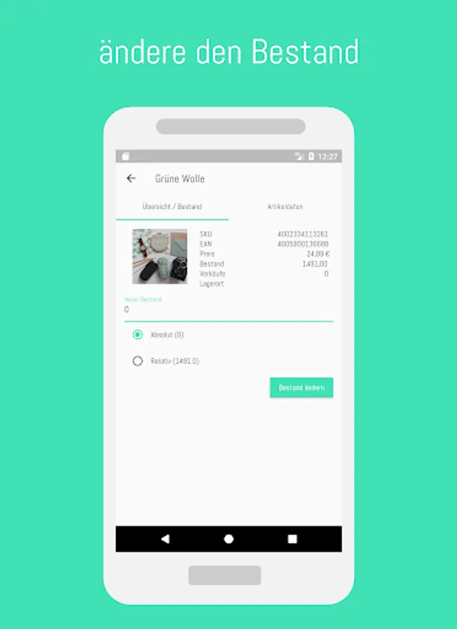 This app allows you, by scanning the barcode of your articles or by entering the article number / EAN, to call up the article and then change the stock absolutely or relative to the current stock.