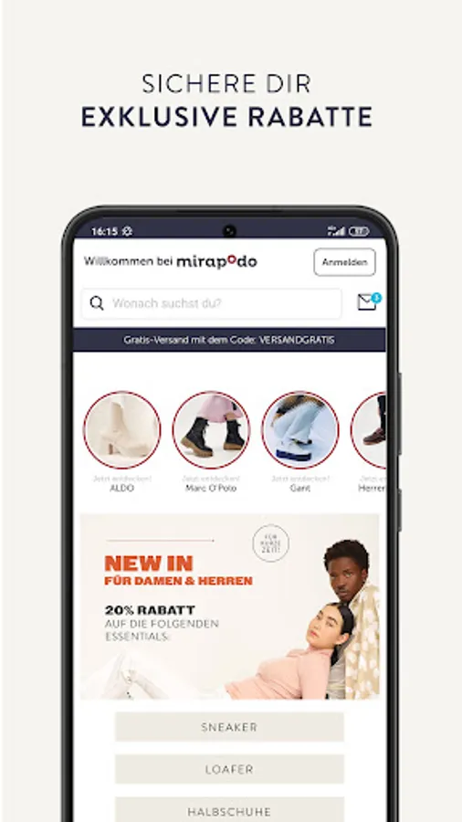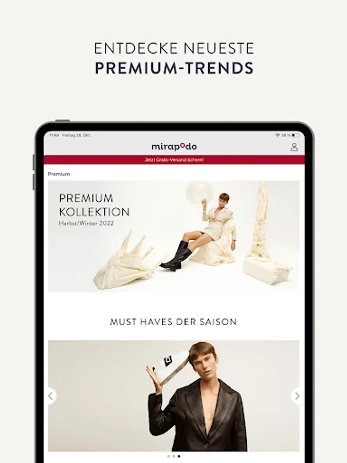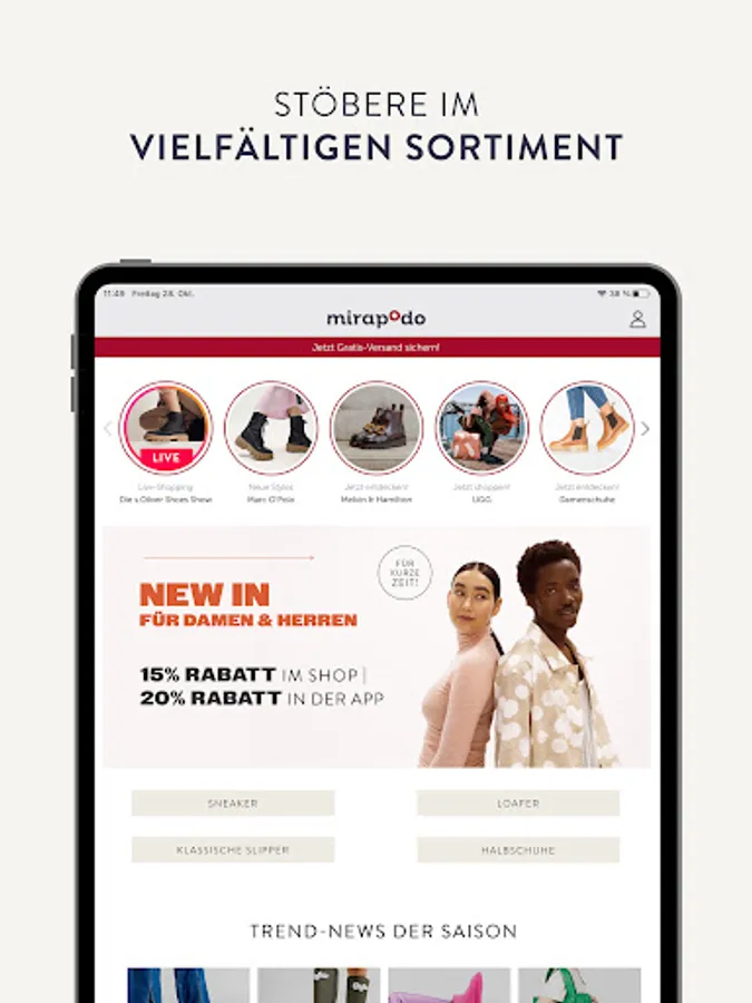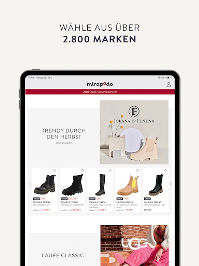 With the mirapodo app, you can shopp the ideal shoe for your outfit on the go. Whether boots, high heels or trend sneakers - Find the shoe that makes your look perfect!