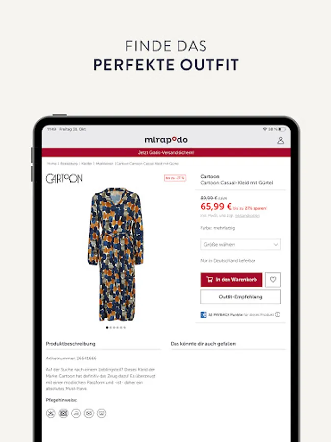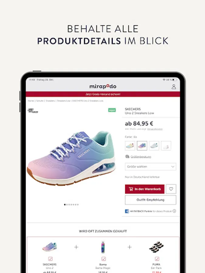 • Our unique KombiShopping now also in the App: Simply shoes and fashion at mirapodo, ideas for your home at yomonda and just put everything for your child at myToys in a common shopping cart and save shipping costs for the KombiShopping order