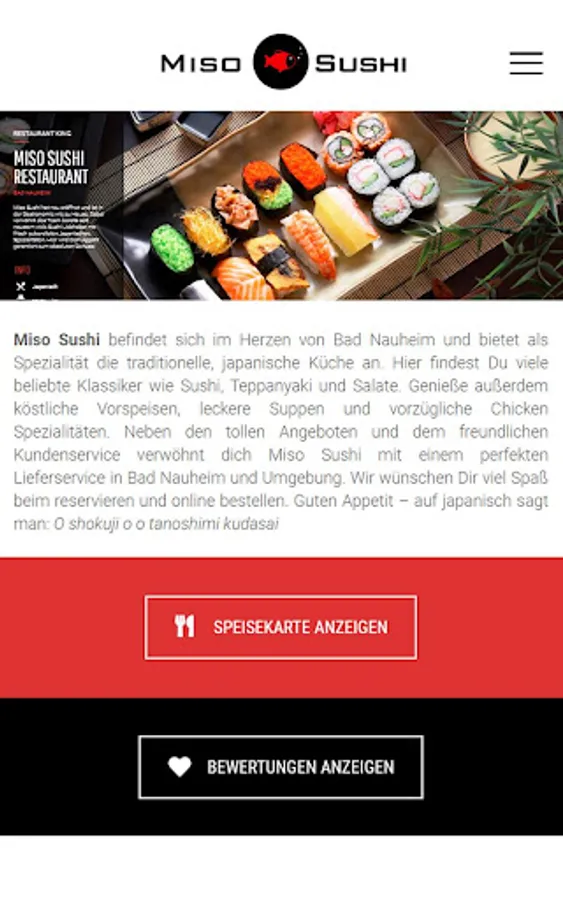 Order your meal online now from Miso Sushi in Bad Nauheim.