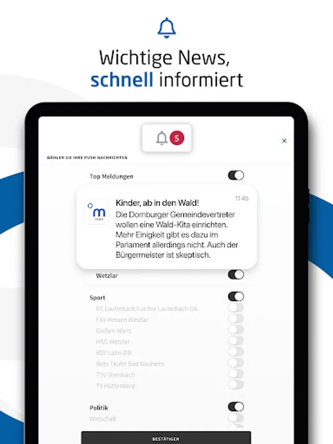 With the Mittelhessen News App you can receive the latest news from your desired region, Germany and the world directly on your smartphone. This means you always know what is happening in your home country and the world - whether in business, politics or sport.