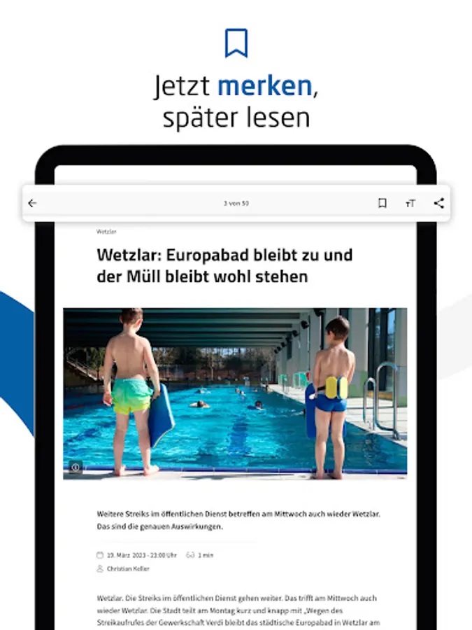 + More regional news: Current and local news from your desired region - now with even more selection in the “Local” section. Note: If the "Local" section remains empty, please empty the app cache via the settings and reinstall the app.