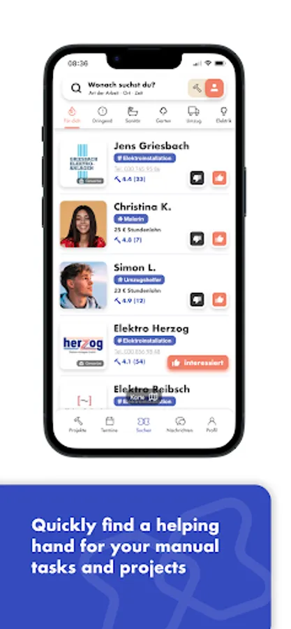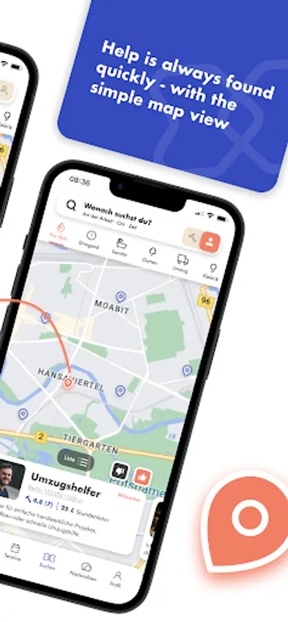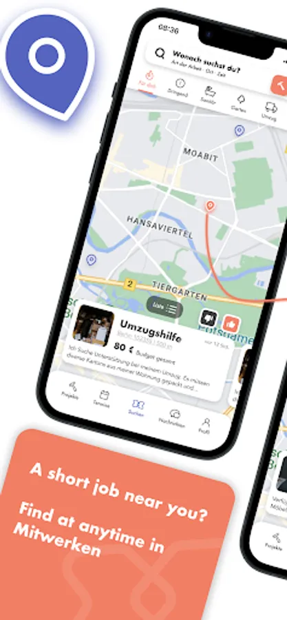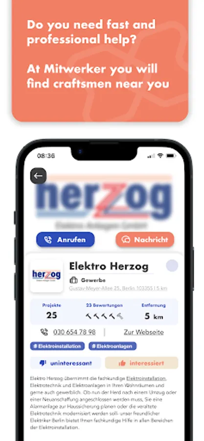 +++ Works like in any dating app: "mitwerker" and clients can like each other in advance. If there are two likes, there's a match! Then you can exchange ideas via the built-in chat and arrange a date.