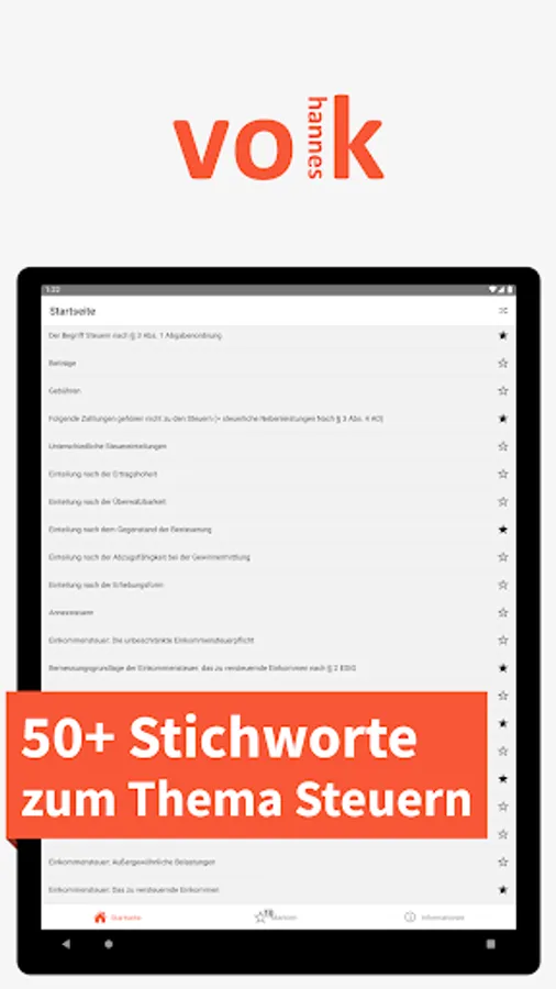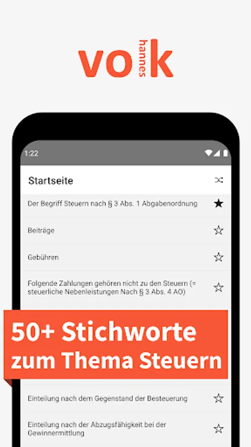 The “Taxes - Keywords” app, written by Johannes Volk, is dedicated to all students, apprentices and trainees who want to prepare for a written exam in the tax department, as well as people who want to acquire basic knowledge about taxation. Elementary terminology, aspects and relationships of taxes are explained simply and precisely in over 50 key words.