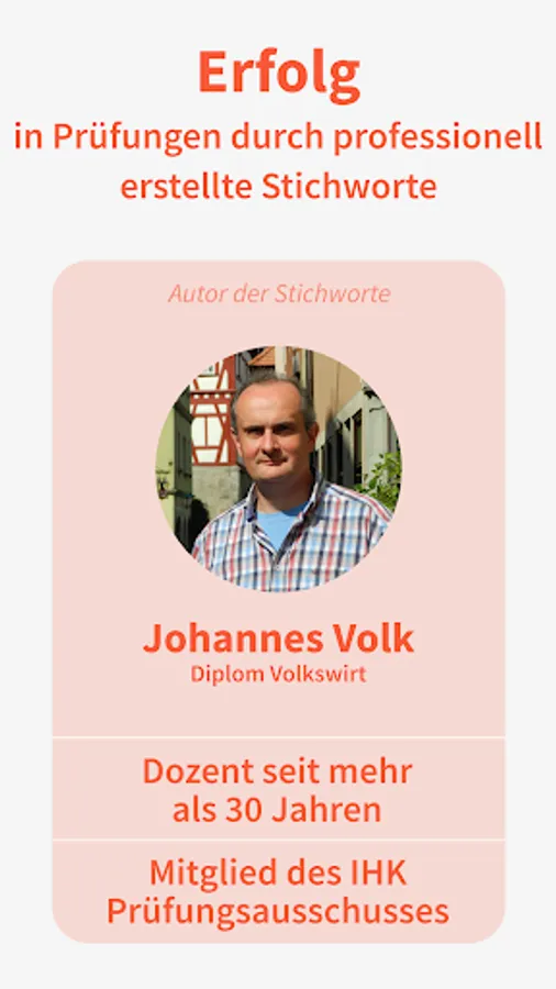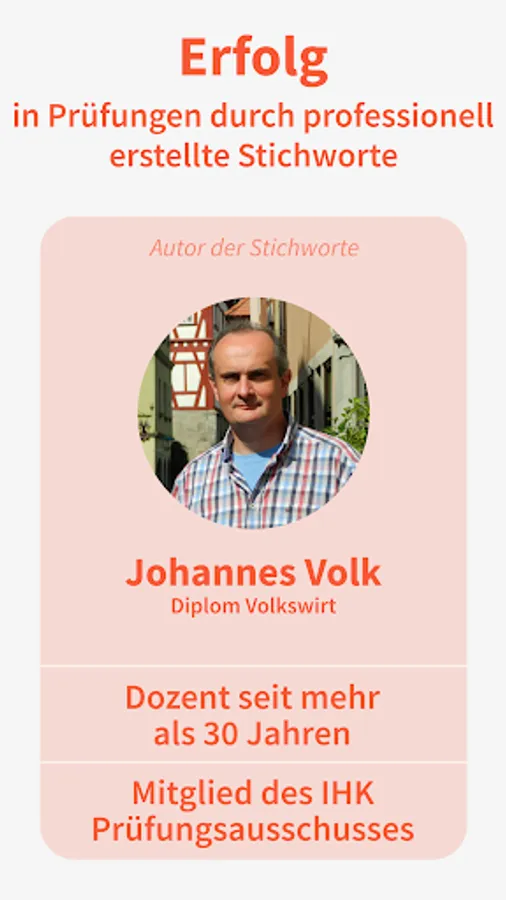 Johannes Volk is a successful lecturer in the fields of economics, accounting, finance / investment, accounting, controlling and financial mathematics, and accompanies prospective business administrators through to their exams. For over 30 years he has been teaching in the above-mentioned departments at various educational institutions, mainly in the Hamburg, Lübeck and Schwerin areas.