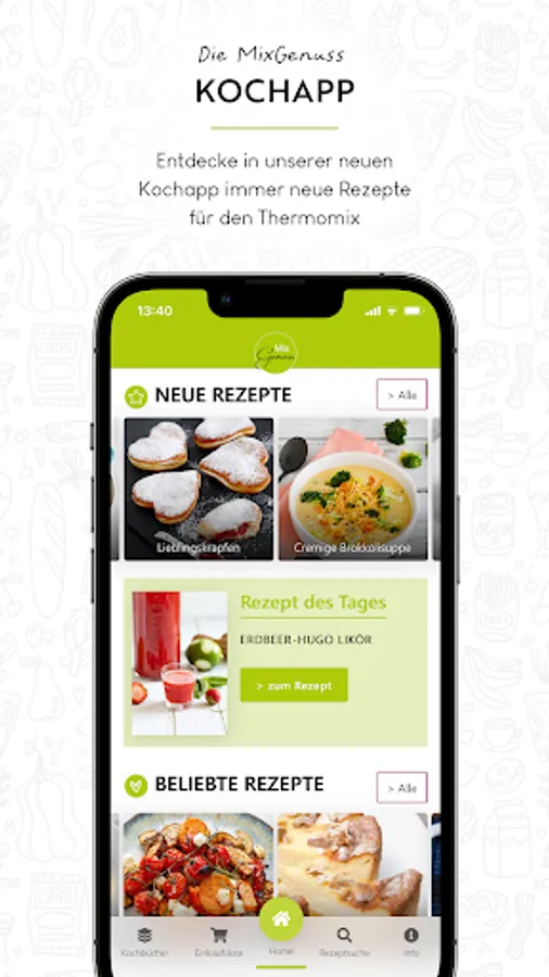 Get the new MixGenuss app now! Lots of great, creative recipes are waiting to be discovered. Our recipes are sure to succeed and uncomplicated to prepare. By using commercially available ingredients, the recipes are absolutely suitable for everyday use and are guaranteed to be delicious! With each recipe you will find the right settings for the Thermomix, the preparation time and the corresponding nutritional values per portion.