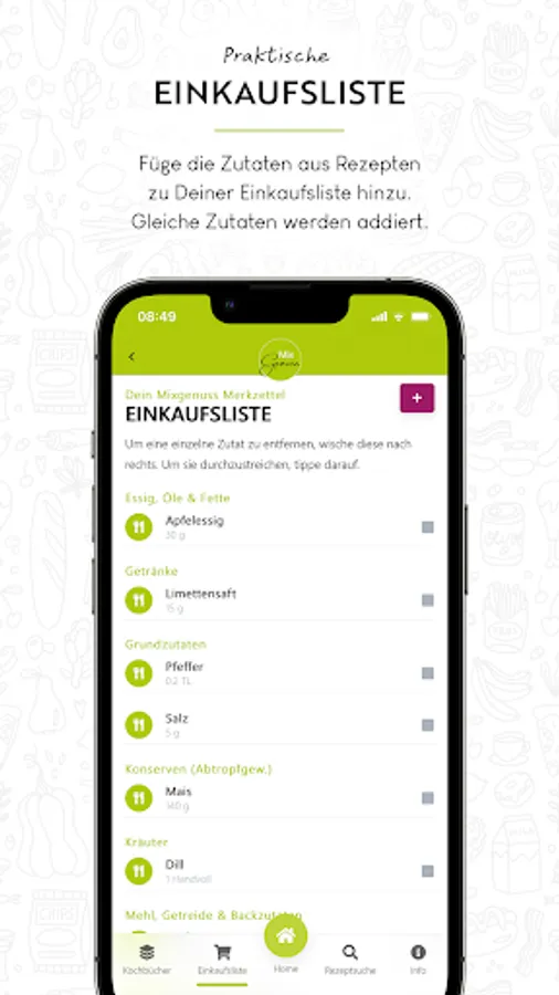 In the app you will also find small collections of recipes (cookbooks). You can have the exclusive cookbooks unlocked directly in the app.