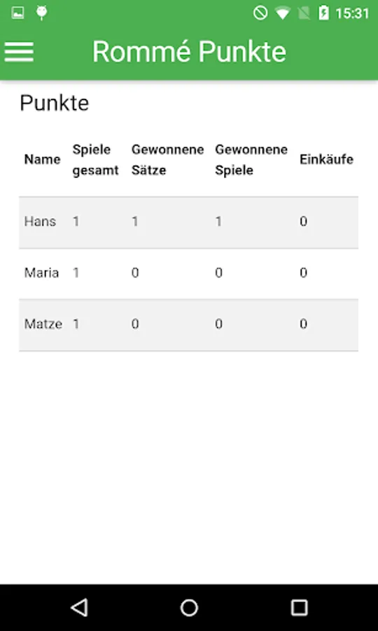 This app helps you play rummy. You can manage all participating players incl. Photo. The respective points are recorded per set.