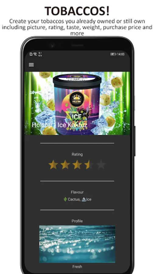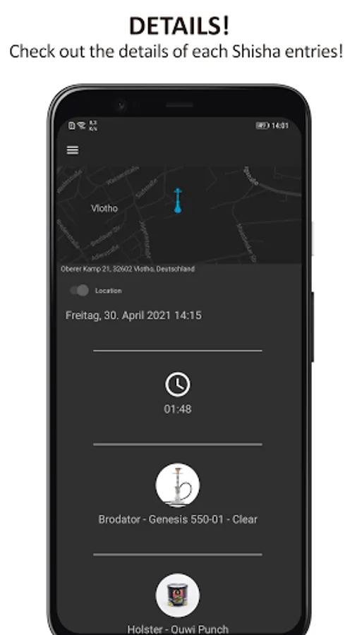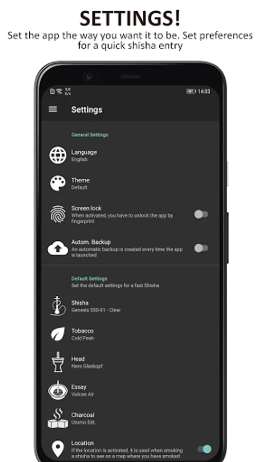 Create a personal shisha diary on your smartphone with a lot of settings about shisha smoking!