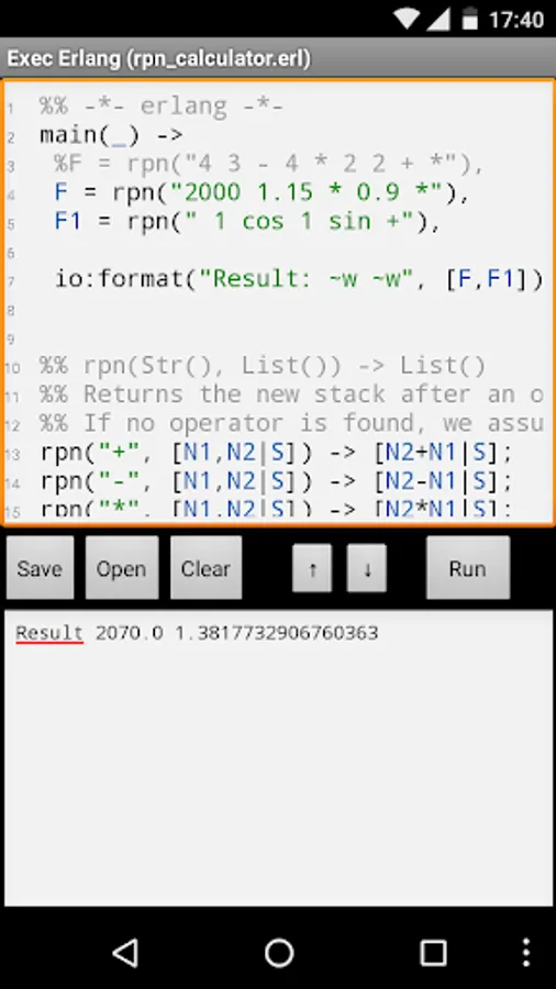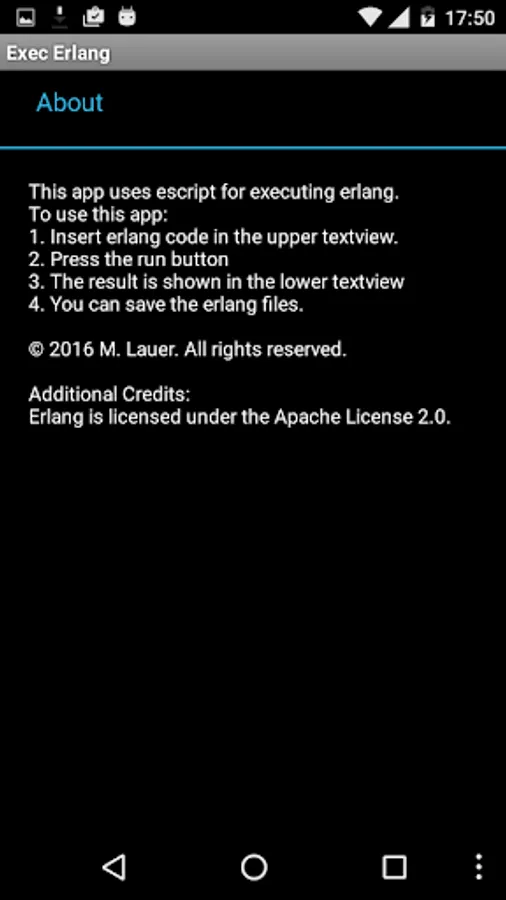 This app can run and manage erlang scripts. The Erlangen code is executed by escript. The scripts can be saved and reloaded.