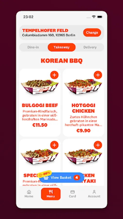 Bulgogi Beef, Hotgogi Chicken, Vegan BBQ & more, right in your pocket: with the Mmaah! app you can order your favourite Korean BBQ for dine-in, takeaway or delivery – always from your favourite location in Berlin.