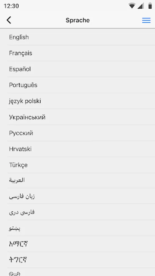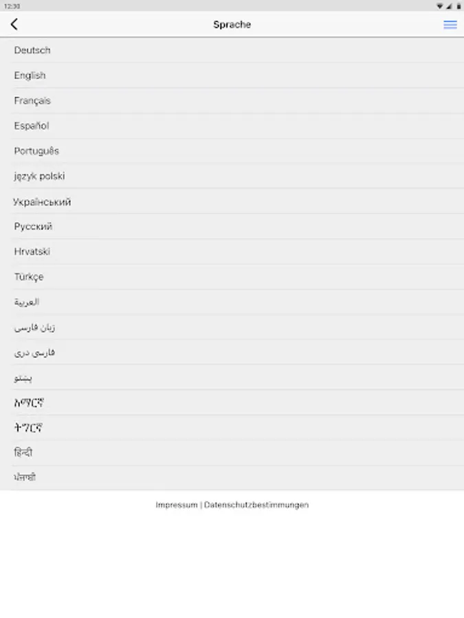 In order to be useful to as many women as possible, the language version can be changed within the APP at any time. The content can be displayed in Amharic, Arabic, Dari, English, French Farsi (Persian), Pashtu, Portuguese, Polish, Russian, Spanish, Tigrinya and Turkish.