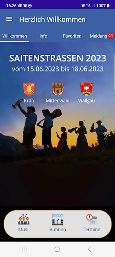 The Saitenstrassen are a music festival for folk music and classical music, which takes place every two years in the upper Isar Valley in the Alpine World Karwendel. With the help of this app you will be informed extensively about the music festival.
