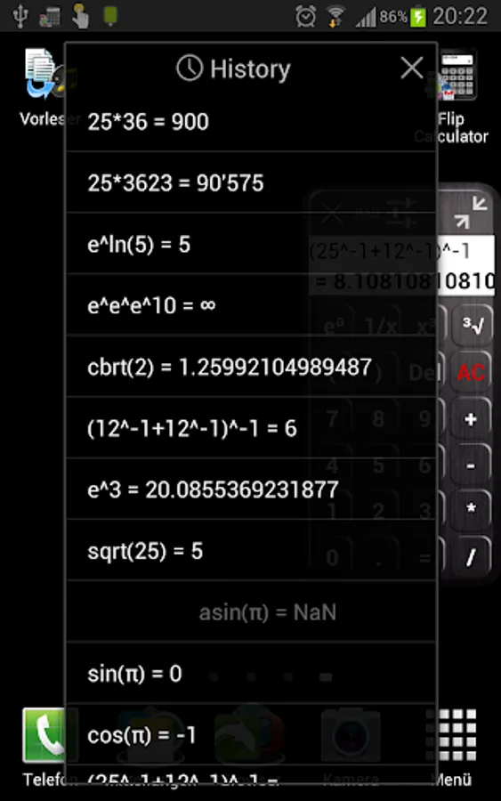 √ ,x², xª, ln, eª,1/x ,x³ ,³√ , sin, cos, tan, π, sin‾¹, cos‾¹, tan‾¹,...