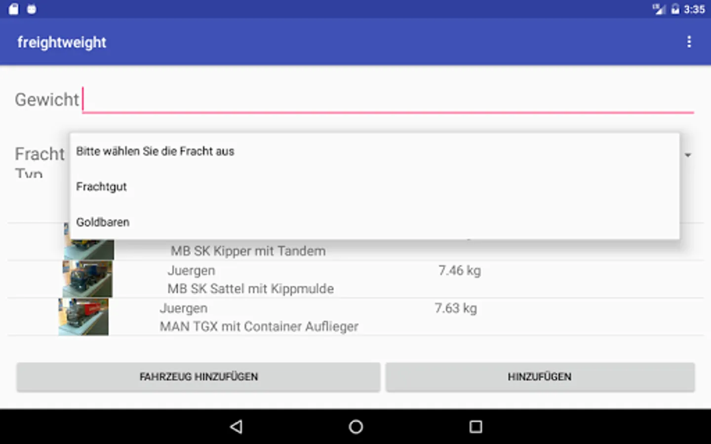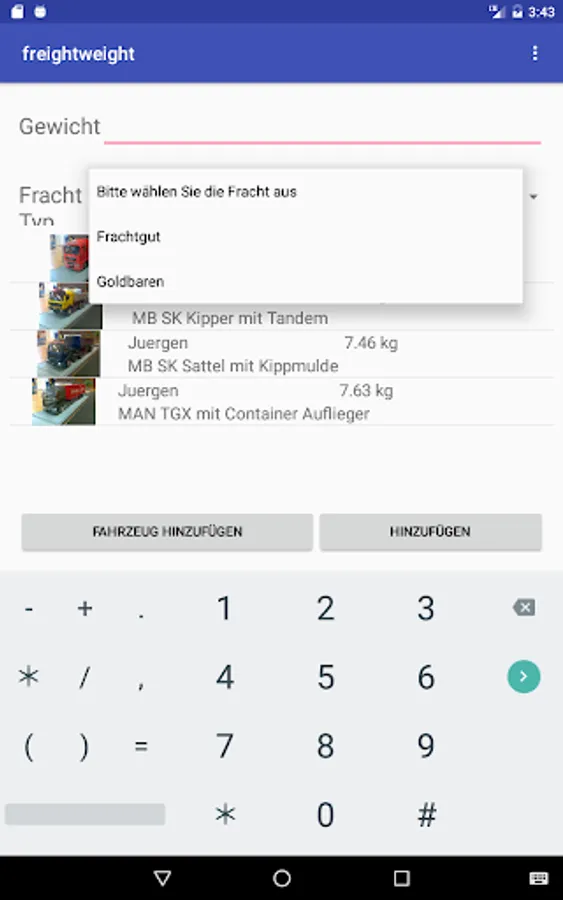 This APP is used to easily record transport weights on model vehicles.