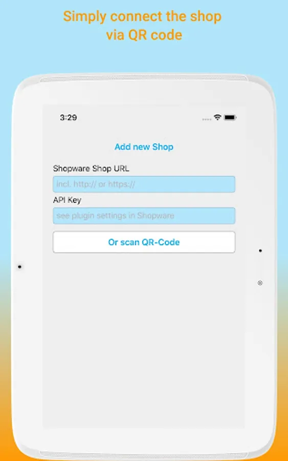 Important: Please allow access to the camera - otherwise the scan is not working and the scanwindow will stay black. Please ensure also to input a valid URL for an existing Shopware shop. This app does only work with Shopware shops.