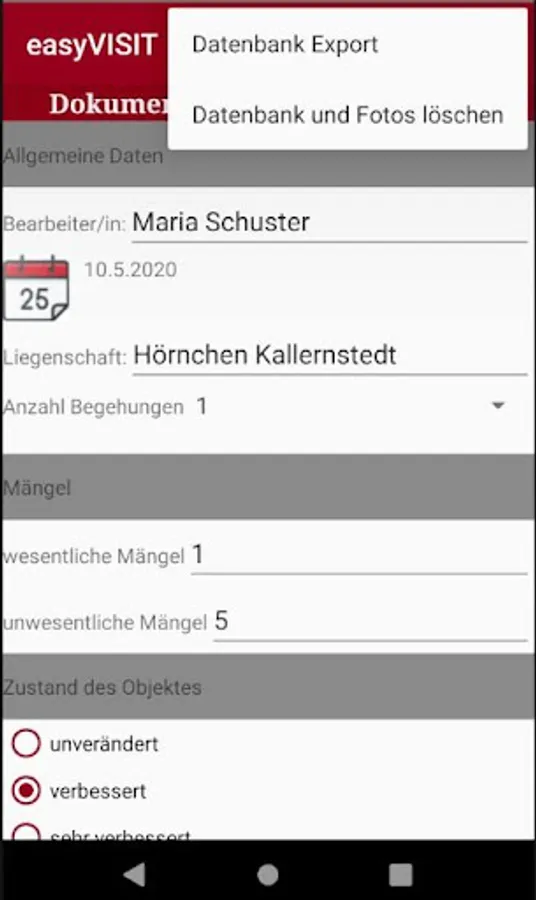 With easyVISITing, simple property reports can be created with the most important criteria.