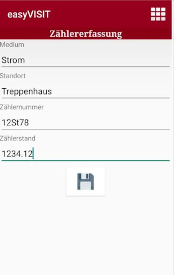 Meter readings can be entered with medium, location, meter number and meter reading.