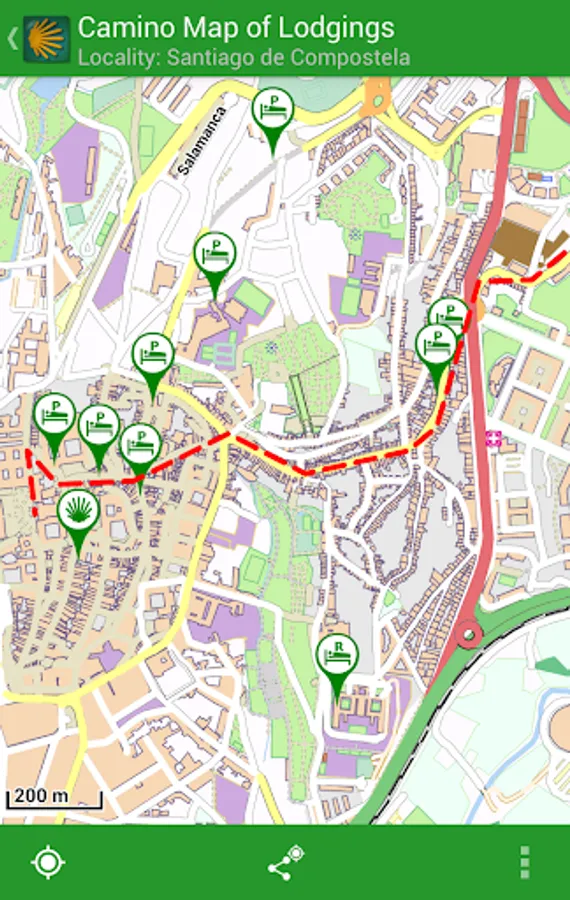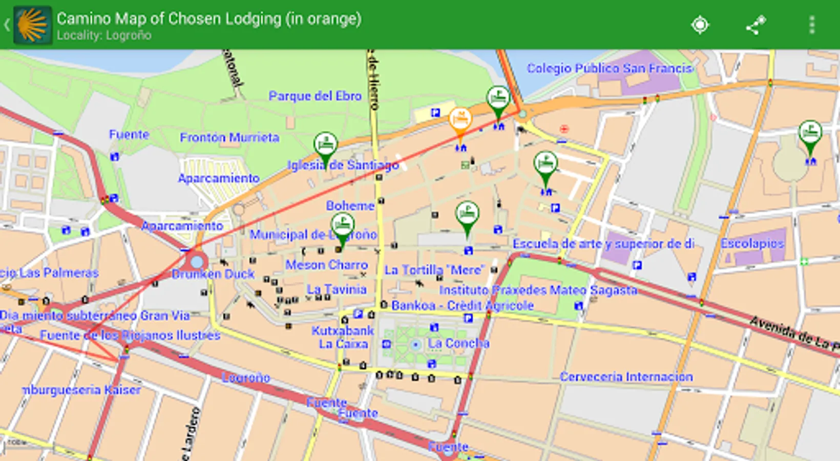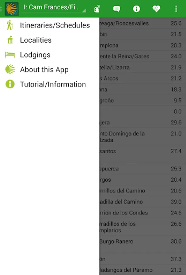 Please remember that this app is provided as a general guide and is neither exact nor complete. Information on localities, lodgings and facilities constantly change. The simplified track shows only a general direction of the Camino de Santiago. Whenever in doubt on the Way, just pay attention and follow the yellow arrows.