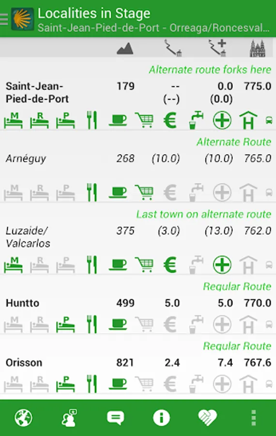 - See automatically computed cumulative distances per walking day, on both the regular route and alternate routes -- to make it much easier to plan your schedule