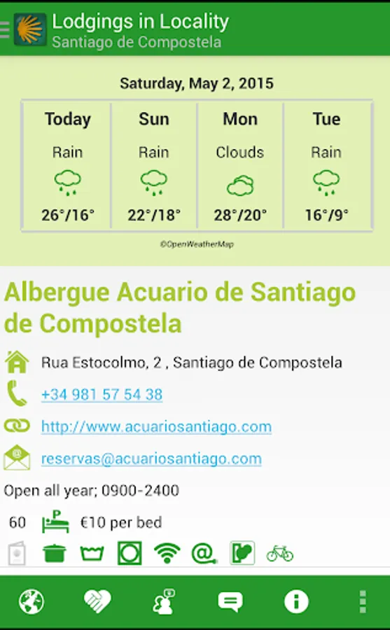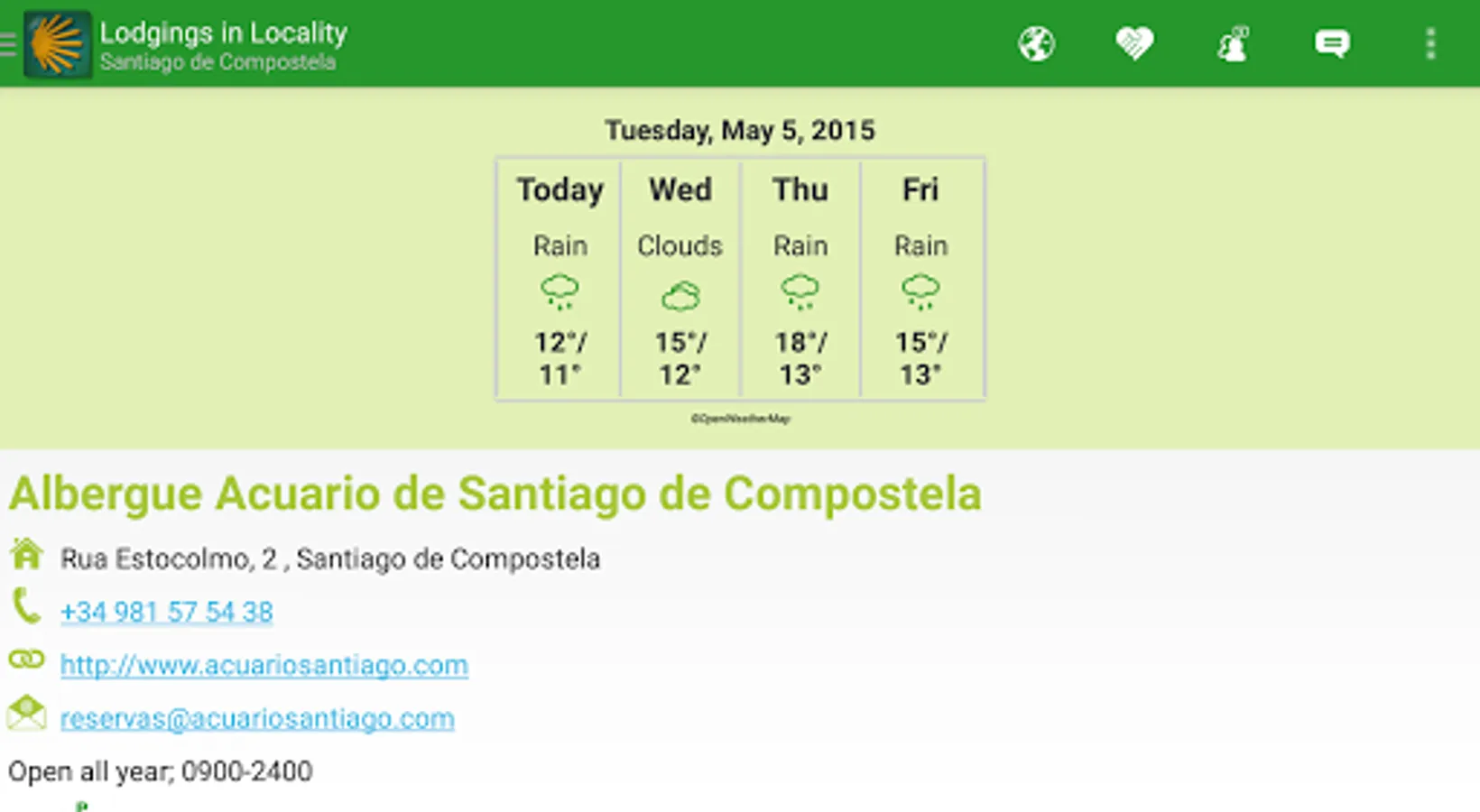 - View the 4-day weather forecast at any locality on the Camino (requires Donation and internet connection)