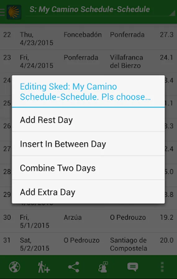 - Customize your own schedule/itinerary to fit your needs -- long-press on the days/stages you want to change and choose from the given options (add rest day, insert In between day, combine two days, add extra day)