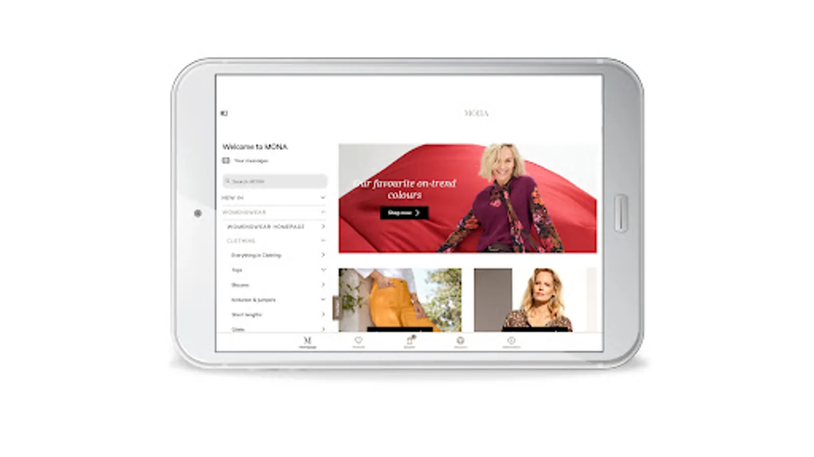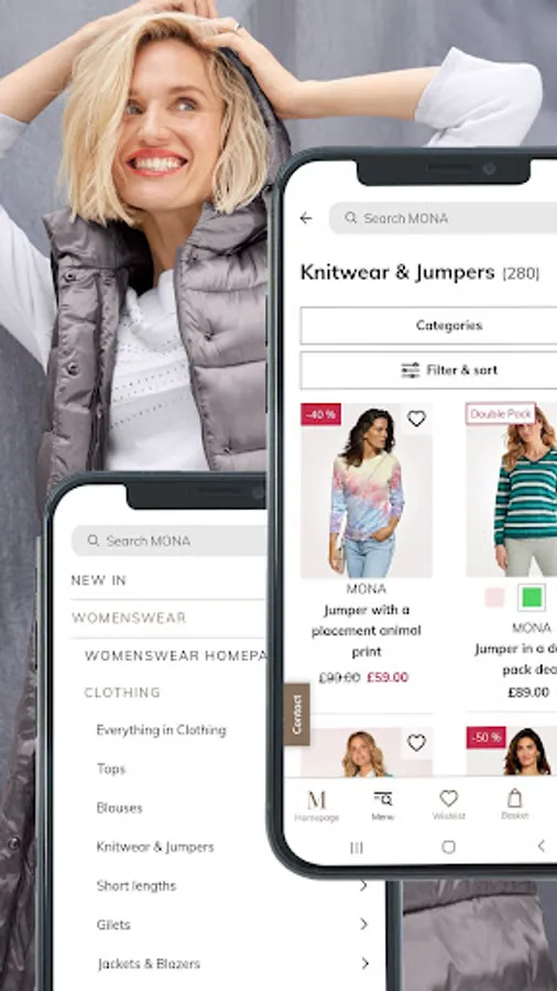 With the free MONA app, you can shop our collection and access our services on the go. Download it now to shop safely and comfortably, find new fashion favourites, and enjoy exclusive discounts and rewards.