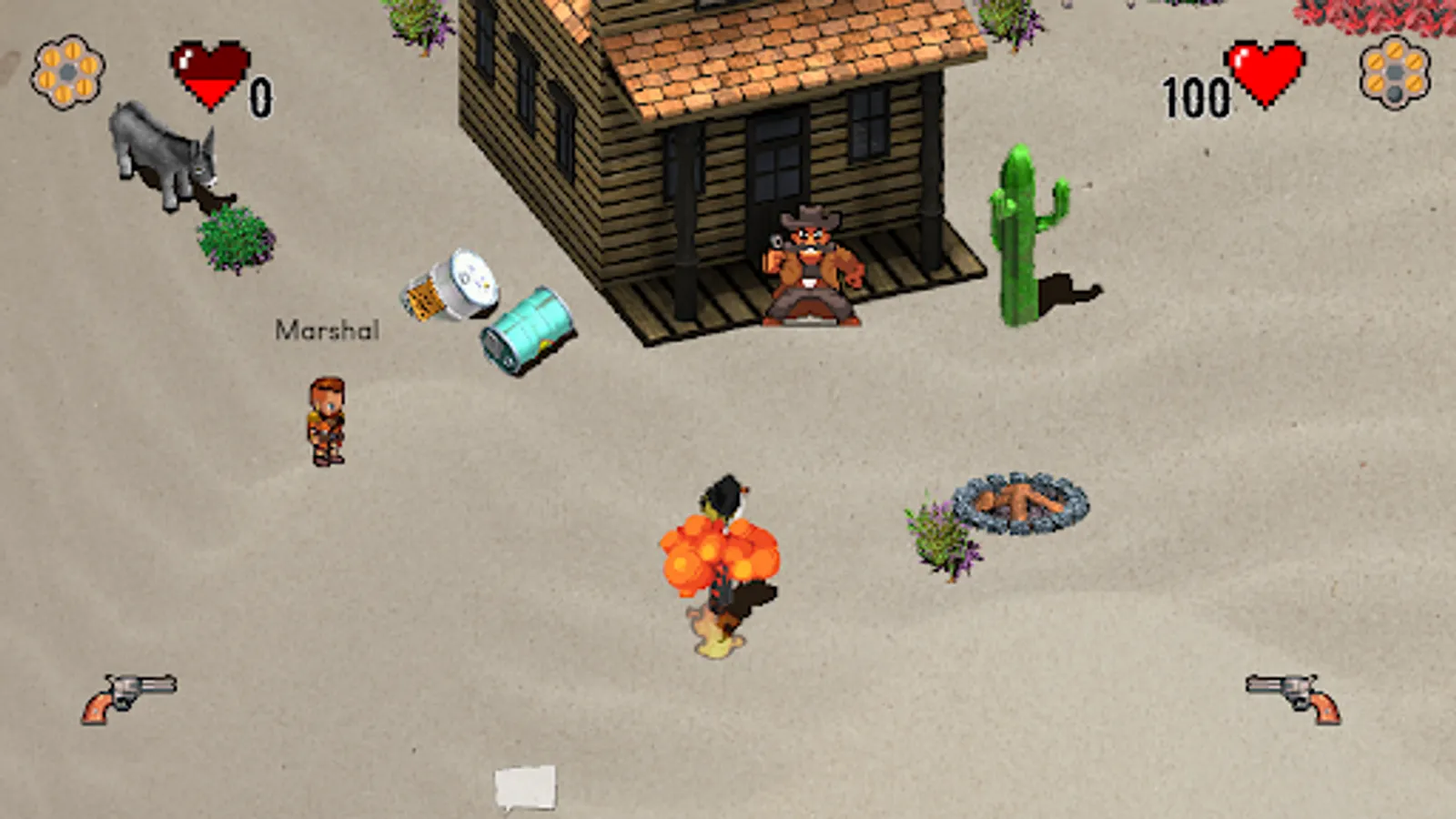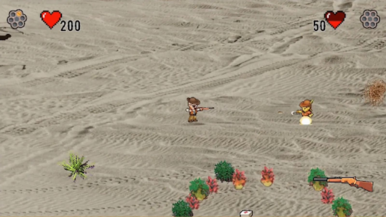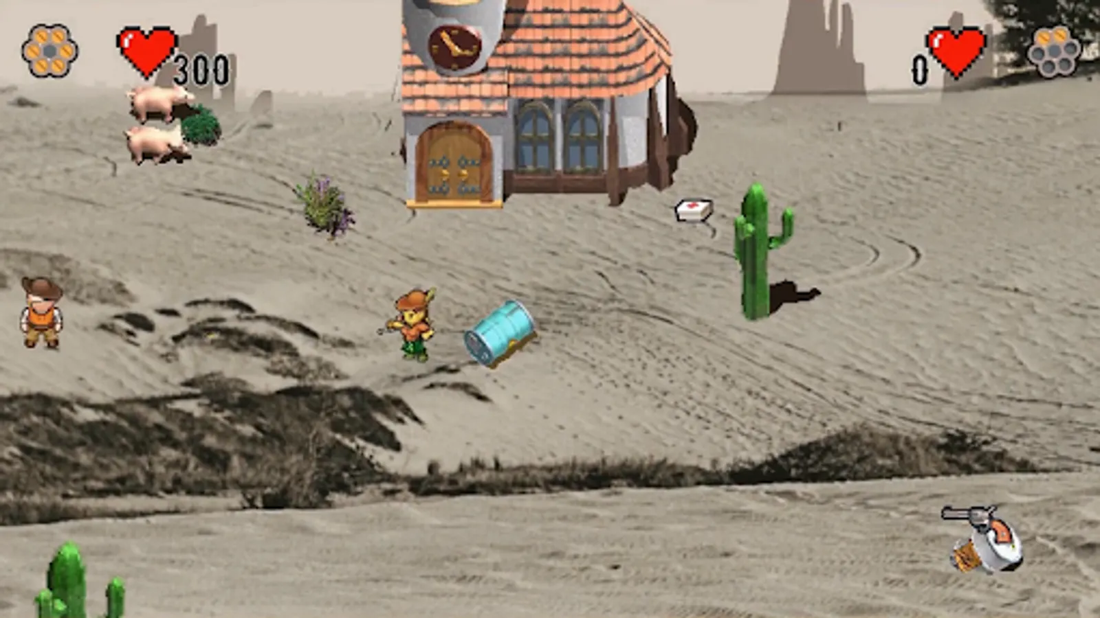 Choose your favorite cowboy or gringo gunslinger from a variety of characters and you’re ready to go – whether you’re playing alone against a computer gringo or online against a friend.