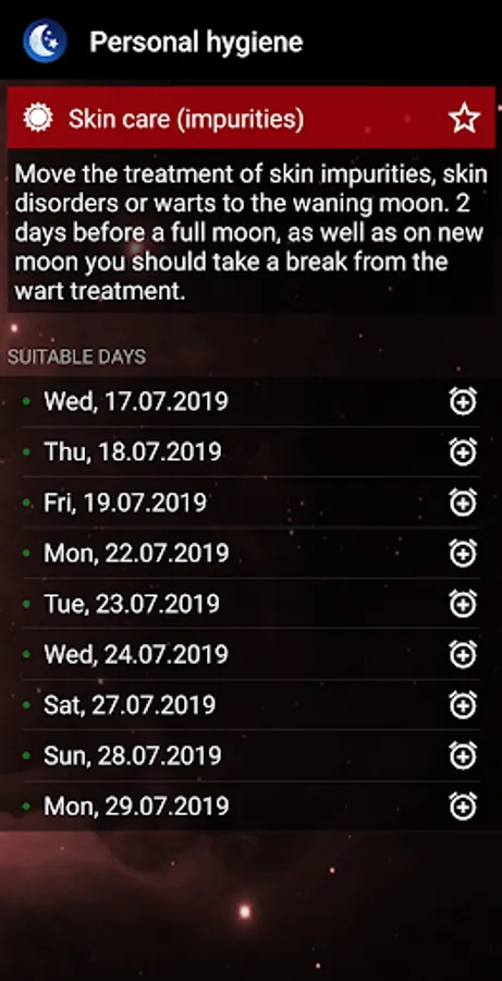 MoonWorx is your perfect companion. You will receive all above mentioned functions and many more information about the current day quality. Read daily tips for more than 90 activities categorized into 7 categories (household, garden, nutrition, body care, hair care, health, DIY), which you can also plan wonderfully with the monthly view.