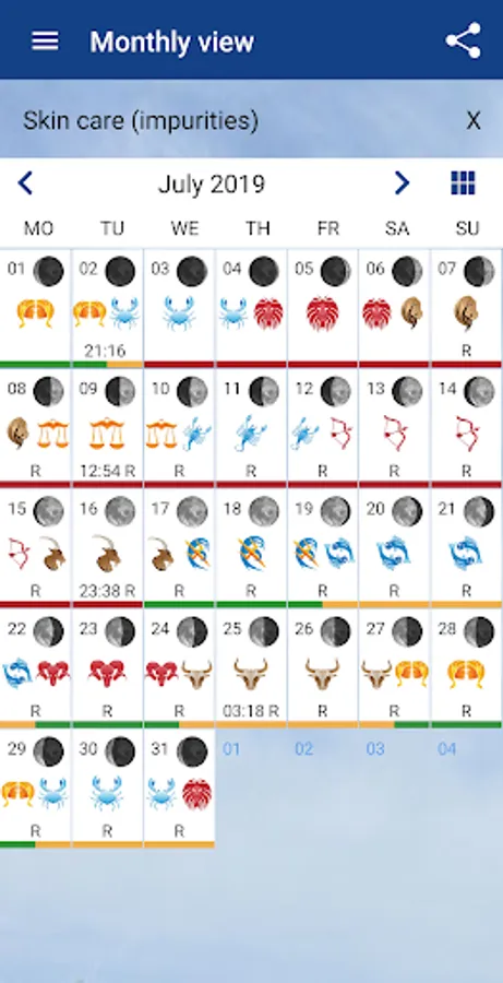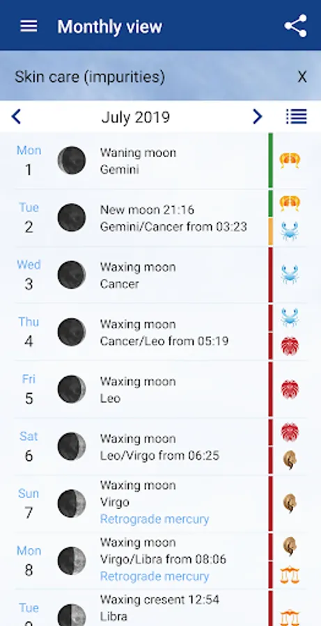 - with biorhythm, moon yoga, retrograde Mercury and complete monthly overview?