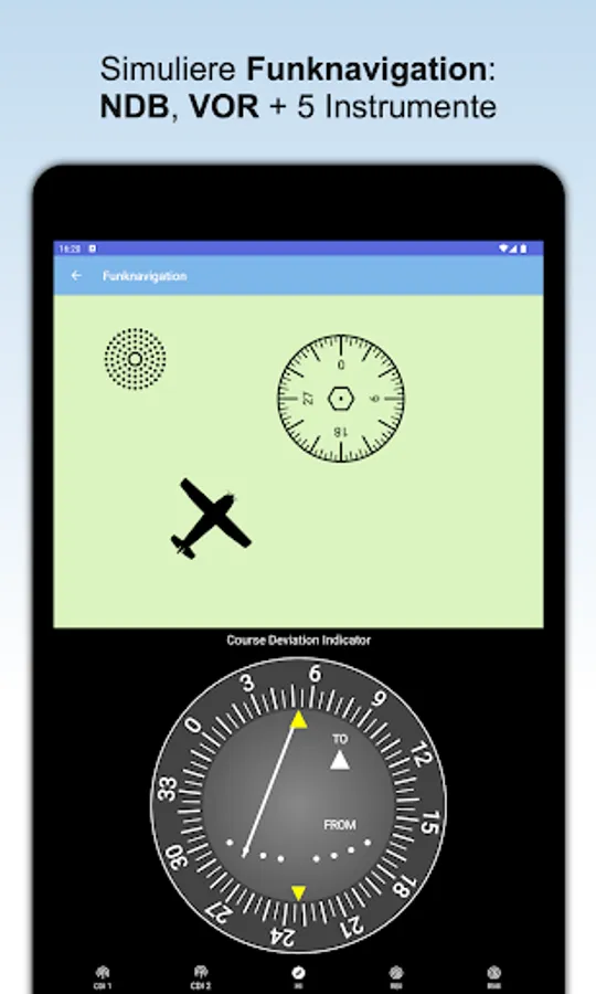 ✓ Aircraft radio simulator for VFR procedures (approaches and departures in German and English)