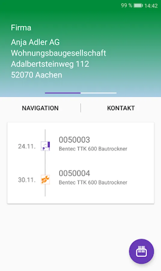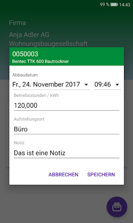 The rental documentation is easily performed using the app: capture scan the bar code, operating hours and time and enter a geo-tag and a note on the status of Mietgerätes on site if necessary. To make comfortable when renting a large number of devices the process around the rental, you can retrieve the relevant data on the APP via a QR code and transmit back to end the operation.