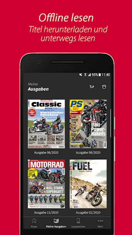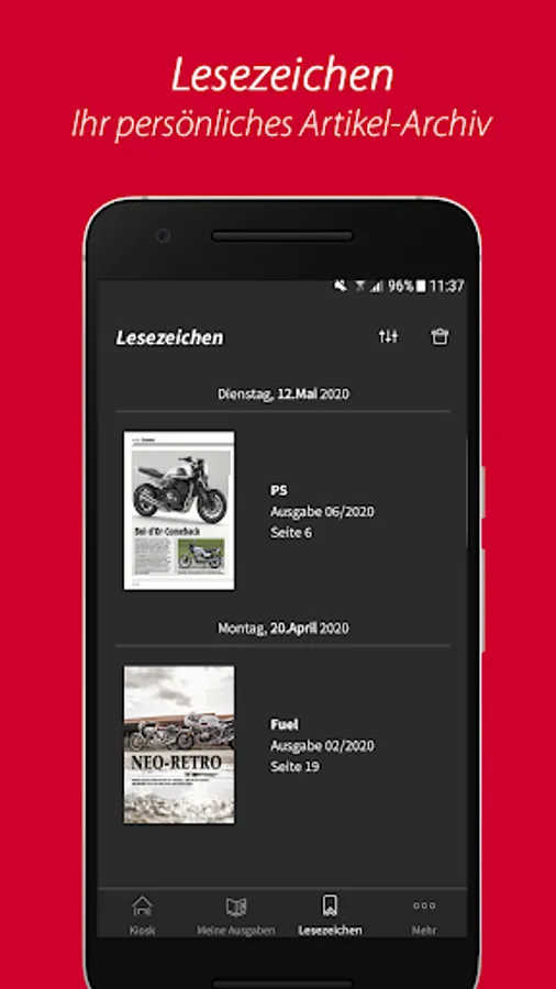 - All digital editions from 2019 of MOTORRAD, MOTORRAD Classic, PS, MOTORRAD Ride and FUEL including all special issues
