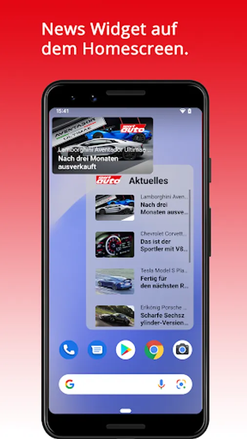 **News widget on the home screen: Among the popular news widgets, which the user can drag directly onto their own home screen, there are also widgets in different sizes for sport auto. Always well informed about the latest news.