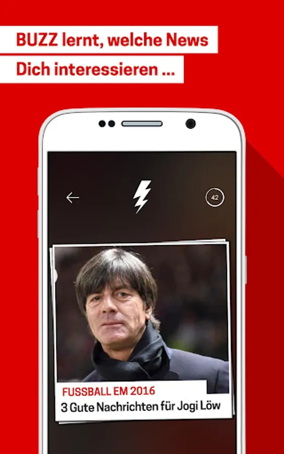 BILD BUZZ is a smart news app. It learns what news interests you and only sends you what you really want to read on your cell phone. Lightning fast as a push!