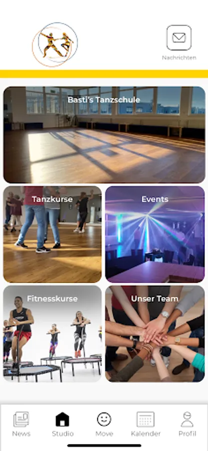 You get a new kind of personal connection to Basti’s dance school. The full range in the form of studio services, courses and events and additional offers or the right contact person and individual specialist knowledge of the employees - you always have a multifaceted insight into Basti's dance school. With a messenger integrated into the app, the digital exchange between you and your studio or your trainer is easier and more straightforward than ever.