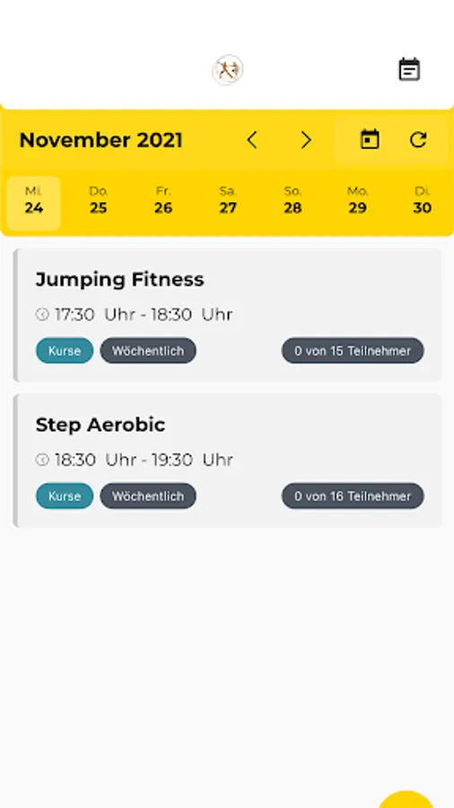 For a clear overview of the entire range of courses and events, you can use the calendar function to view your appointments at a glance. B. to find the most suitable course and easily register for it directly in the app. You can also set a personal reminder in advance of the course and see at any time how full the course is on the status quo.
