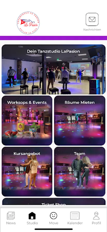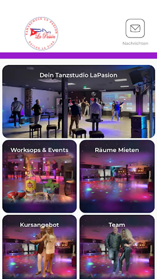 You get a new kind of personal connection to the dance studio LaPasion. The full range in the form of studio services, courses and events and additional offers or the right contact person and individual specialist knowledge of the employees - you always have a multifaceted insight into your dance studio LaPasion. With a messenger integrated into the app, the digital exchange between you and your dance studio LaPasion is easier and more uncomplicated than ever.