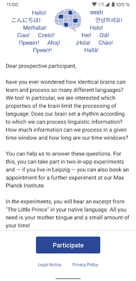 Please help us—run two simple experiments on your smartphone. You will listen to a short excerpt from the all-time classic "The Little Prince" in your native language and answer simple questions. All you need to help science is your mother tongue and a little time!