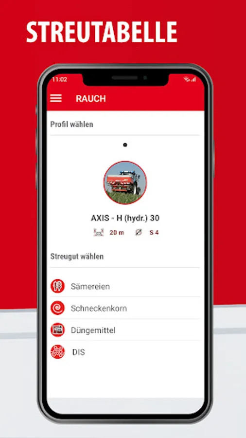 The RAUCH-App (formerly "Fertilizer Chart") is an interactive spreading chart for current and older RAUCH-Fertilizer-Spreaders series which can also be used without internet connection.