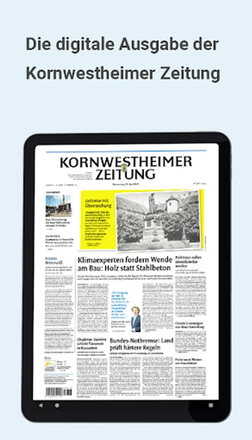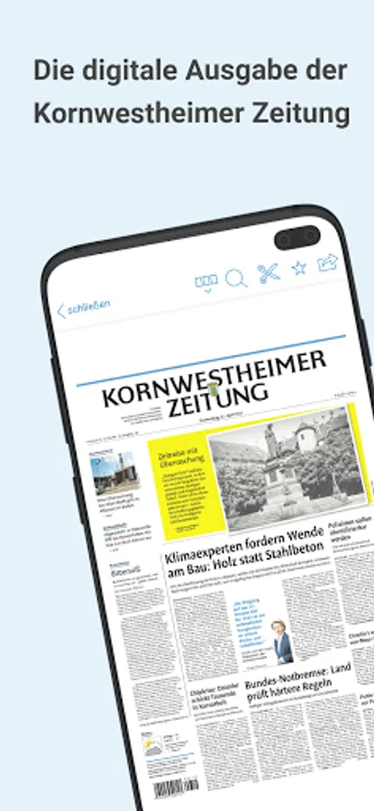 With the digital edition of the Kornwestheimer Zeitung you can read the most important things from the region and around the world every day from 5 a.m. at the latest. The KWZ ePaper app brings the newspaper to your Android tablet and smartphone in a true-to-original format. The user interface, optimized for digital reading, and many useful additional functions offer a comfortable reading experience every day.